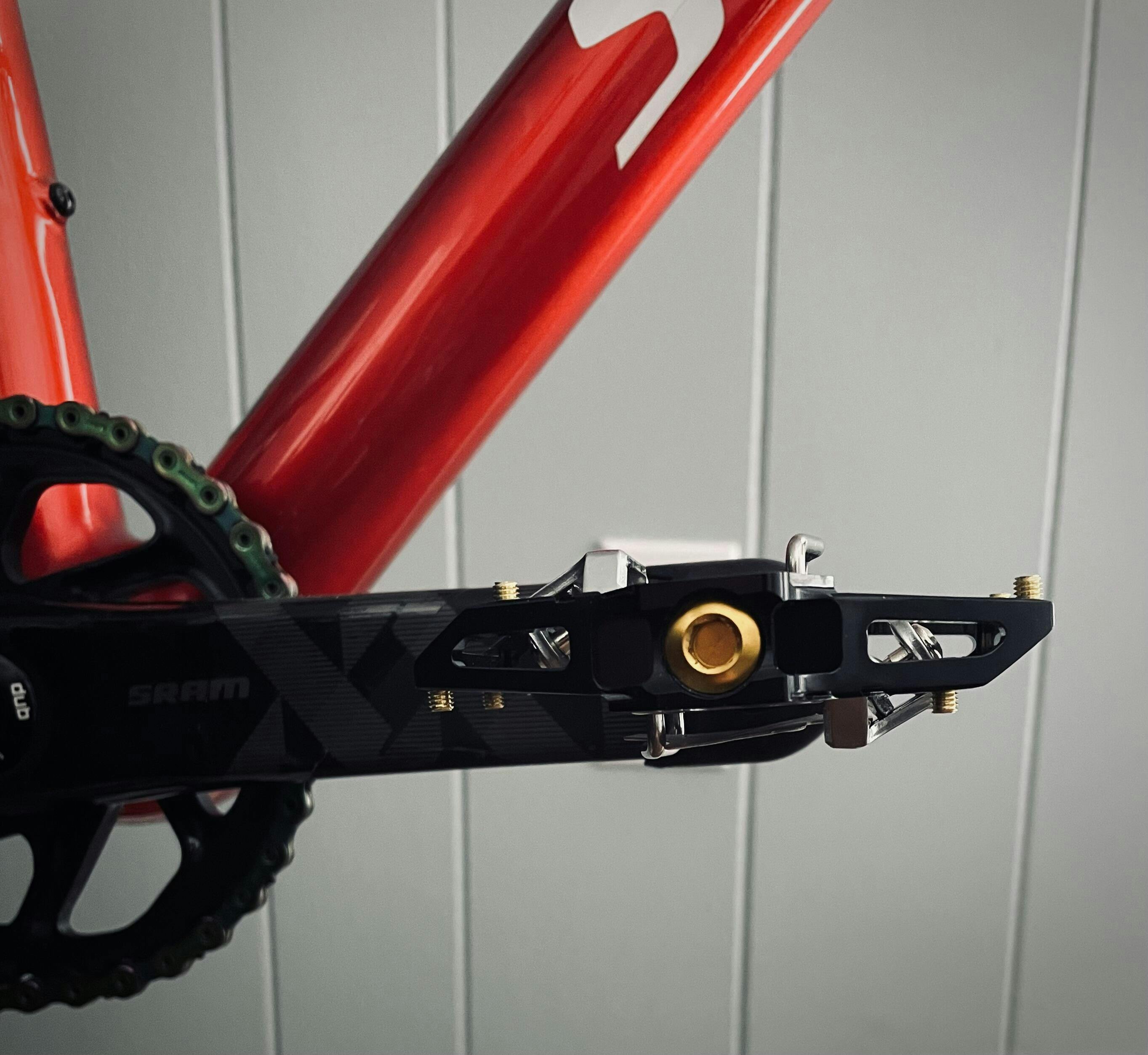 T2T pedals are designed for trail and enduro use, with a low profile base platform to support increased stability on aggressive terrain. The body is made from extruded CNC-optimized aluminum for strength to weight ratio, with CNC machined Titanium spindles.