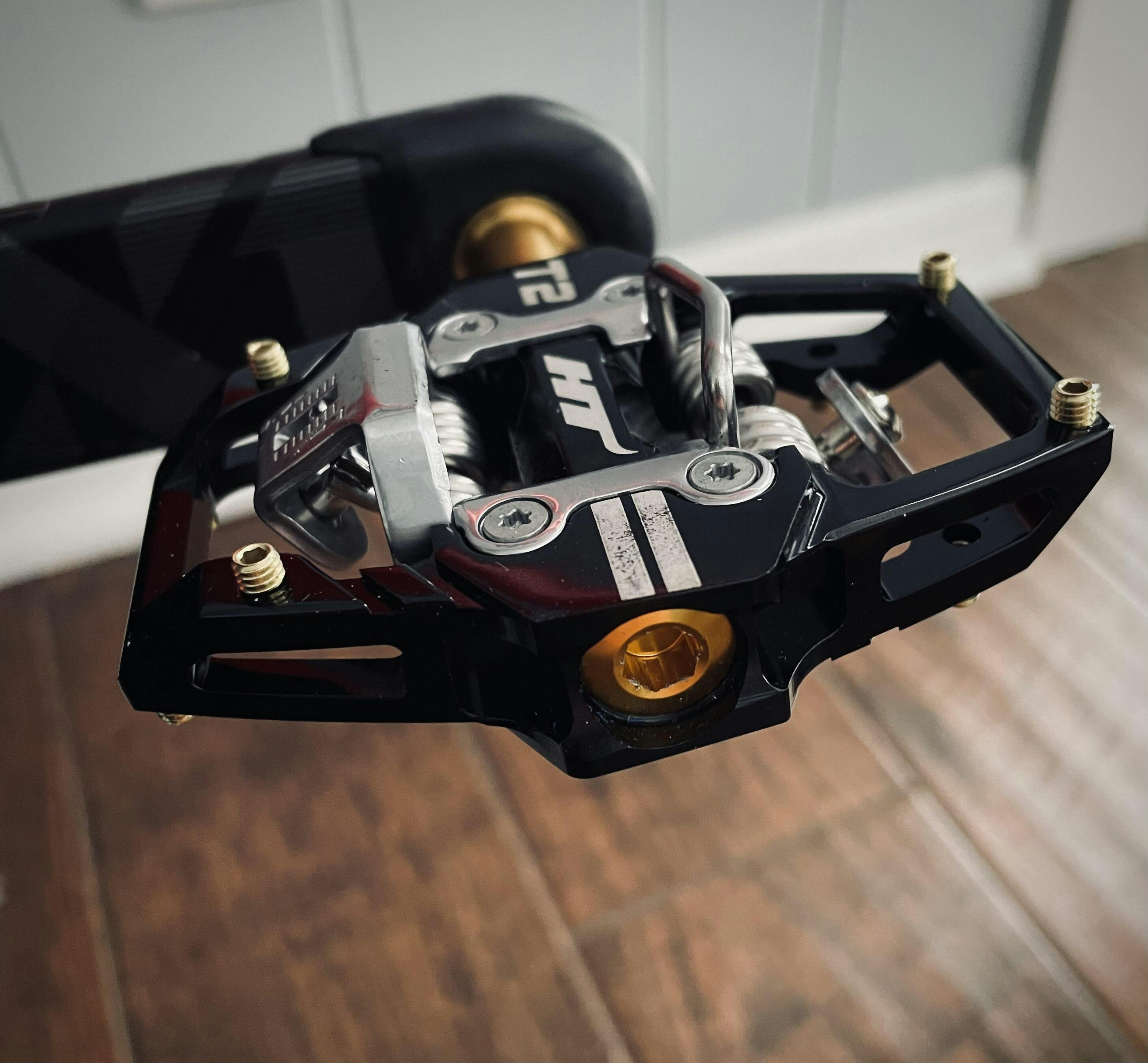 HT T2T Dual Sided Clipless Platform Pedals 9/16" Titanium Spindle Alloy Body Blk